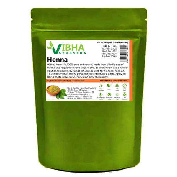 Vibha Henna Powder is a made from the dried leaves of the Henna Plant (Lawsonia inermis). Henna is also called as Mehandi and has been used for many many years in India and across the world. Vibha Henna Powder is totally natural and a safe solution for hair colour. It contains only Henna Powder. It is completly safe and devoid of chemicals and colouring agents. It can also be used for body art.